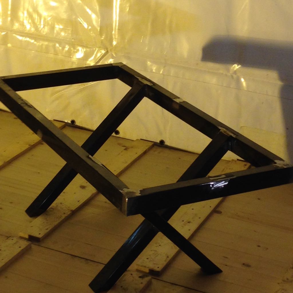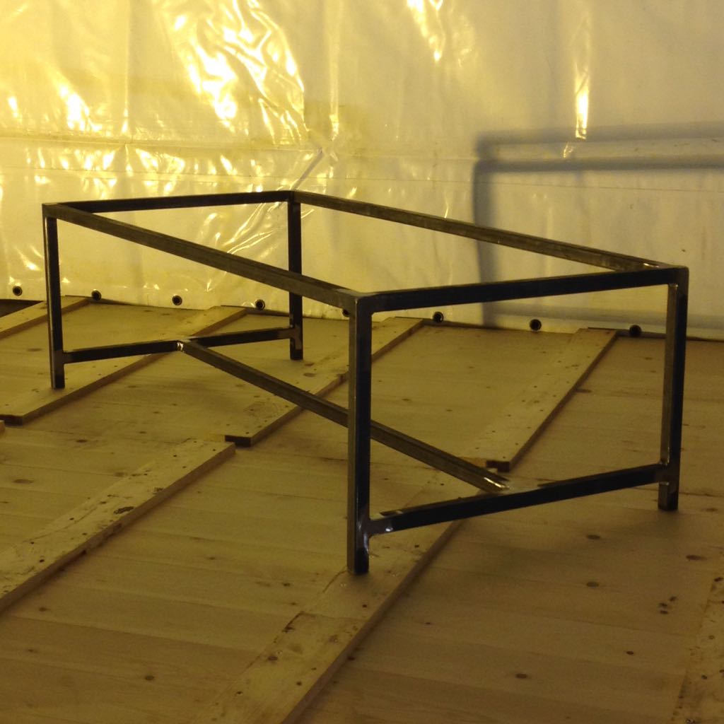 Helemaal trendy, een grof tafelframe geschikt voor een houten-, stenen- of kunststoftafelblad. De frames kunnen worden gelast in verschillende diktes, vormen en formaten.