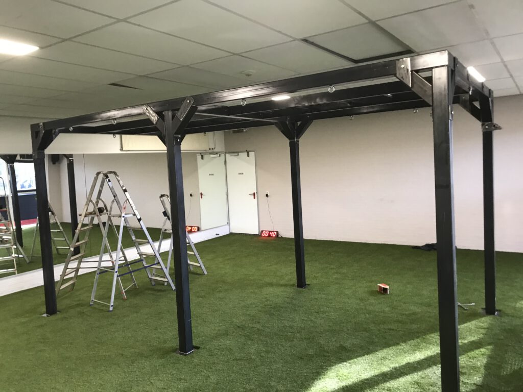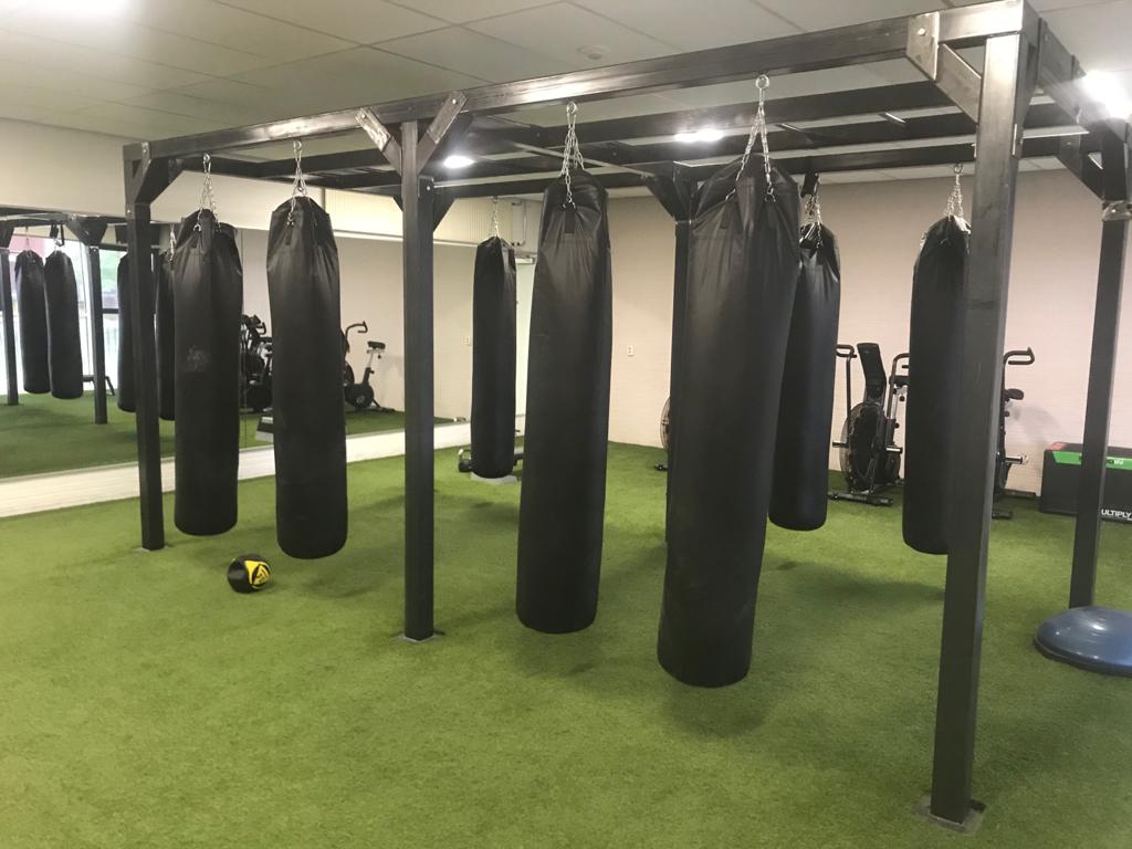 Een stevig frame voor het ophangen van verschillende zware bokszakken en voor andere fitnessoefeningen. De sportles kan beginnen!