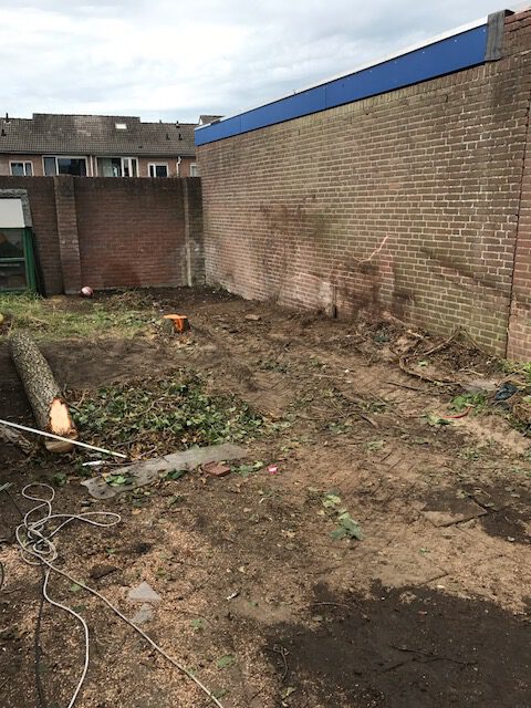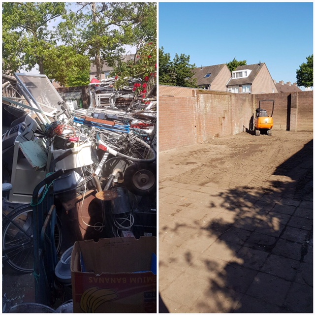 De opdrachtgever had een tuin vol oud ijzer. Dit hebben we netjes opgeruimd en nu is hij blij met zijn tuin.