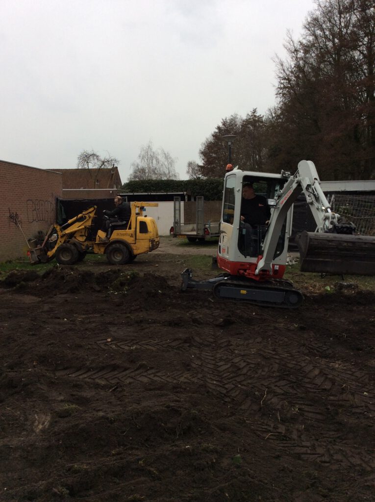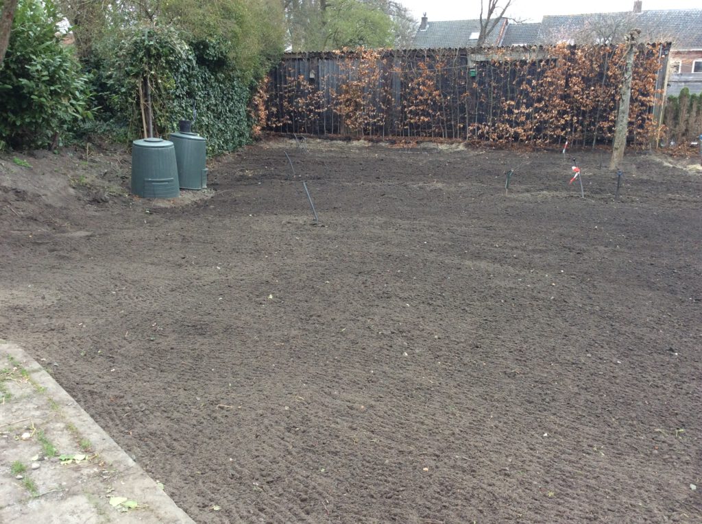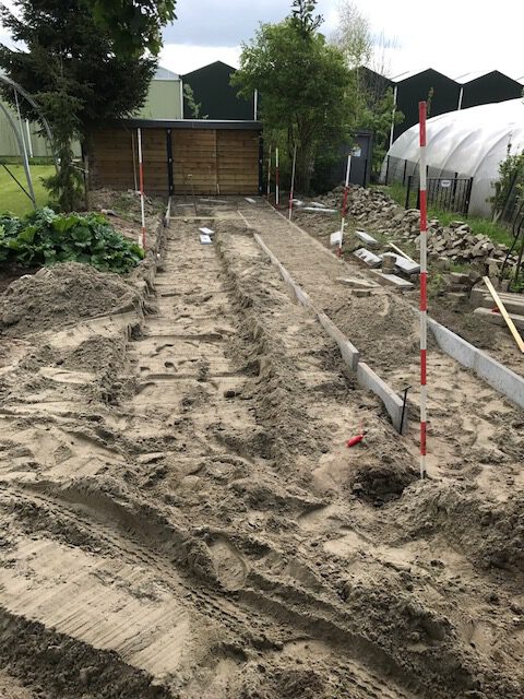 Afgraven, sproeisysteem leggen en straten