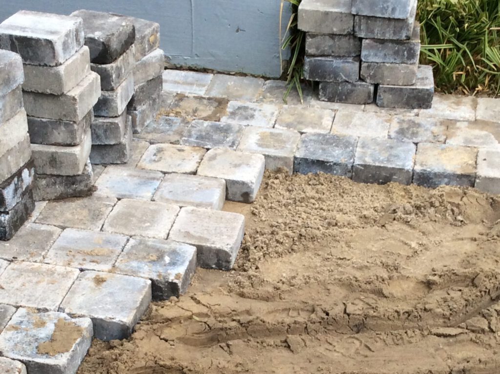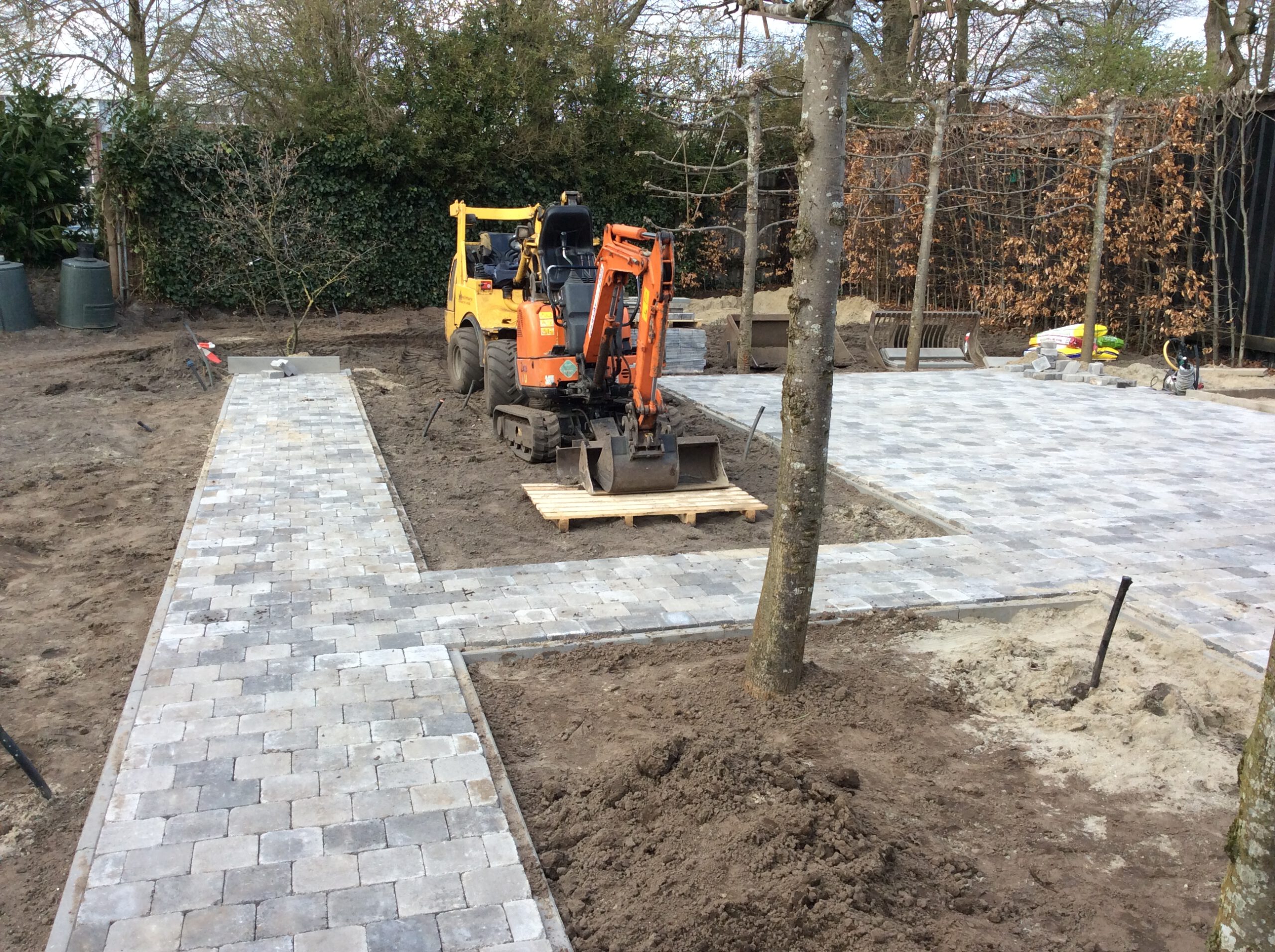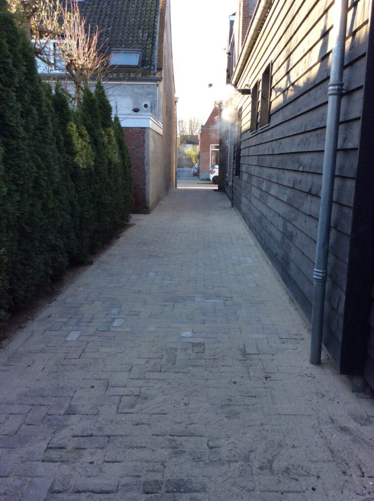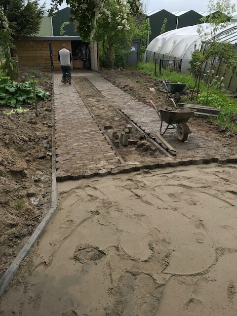 Van zandbak naar strak pad naar de schuur. Een leuk project voor een tevreden opdrachtgever.